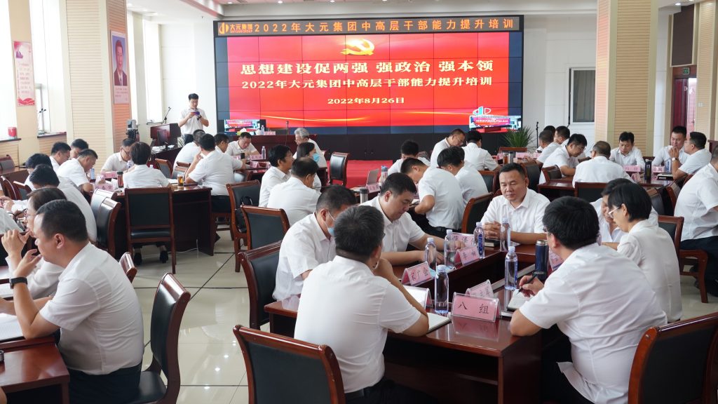 為持續鞏固集團2021年思想建設回頭看活動成果,進一步推進集團“思想建設促兩強 強政治 強本領”活動,以思想建設促兩強實現集團高質量跨越式發展。集團于2022年8月26日-27日召開“思想建設促兩強 強政治 強本領 ”大元集團中高層干部能力提升培訓會,本次會議線上、線下相結合,集團總部中高層領導、各集團總裁及下屬單位經理現場參會,并分為十個小組進行討論分享。