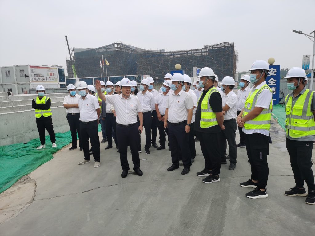 項目現場,李主席詳細詢問項目現場安全生產管理、工程進度、防疫措施等情況。對工作人員舍小家、顧大家的優良作風和敬業精神表示敬佩。