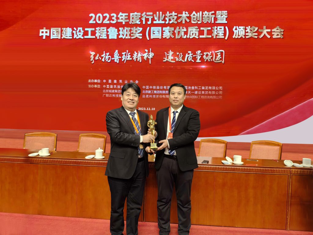 12月10日,2022~2023年度行業技術創新暨中國建設工程魯班獎(國家優質工程)頒獎大會在北京舉行,大會向獲獎工程的承建單位授予魯班金像。由大元建業集團股份有限公司承建的河北工程大學圖書館項目名列其中,大元建業集團董事長王連興,大元建筑安裝總公司總經理何立強赴北京會議中心現場領獎。